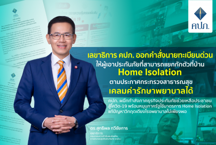 เลขาธิการ คปภ. ออกคำสั่งนายทะเบียนด่วน ให้ผู้เอาประกันภัยที่สามารถแยกกักตัวที่บ้าน Home Isolation ตามประกาศกระทรวงสาธารณสุข เคลมค่ารักษาพยาบาลได้