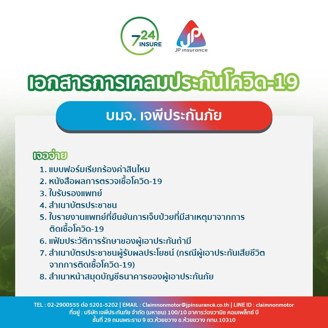 คลิกเพื่อดาวน์โหลดเอกสารเคลมบมจ.เจพีประกันภัย
