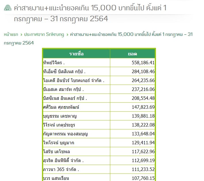 ตัวอย่างรายได้ ค่าแนะนำ + ค่าบริหารทีมงาน (ไม่รวมรายได้จากการขายส่วนตัว) จะมีประกาศที่หน้าเว็บไซด์ศรีกรุงโบรคเกอร์ ทุกเดือน