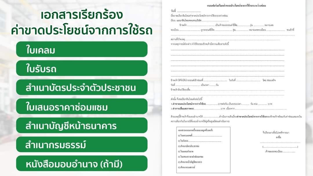 เบิกค่าขาดประโยชน์จากการใช้รถ ใช้เอกสารอะไร ?