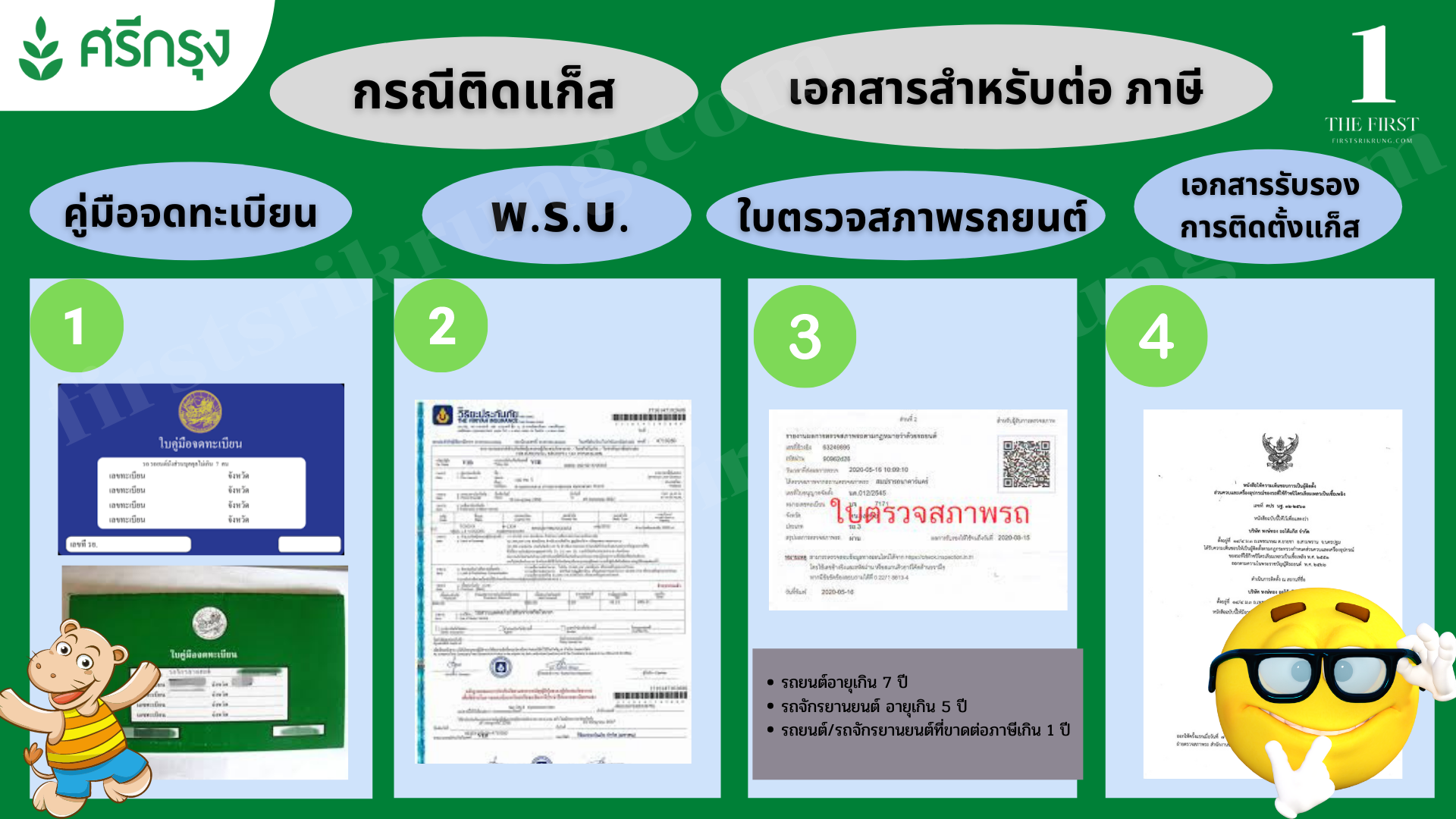 เอกสารสำหรับต่อภาษีประจำปี รถติดแก็ส