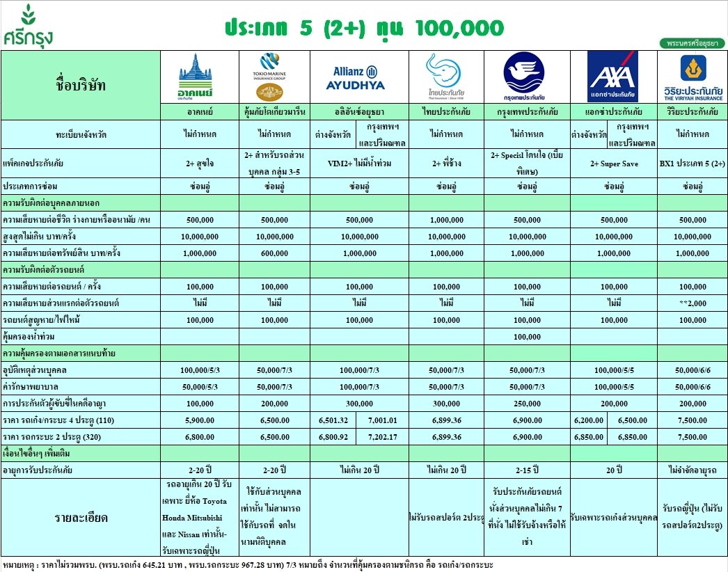 เบี้ยประกันประเภท 5 (2+) ทุน 100,000 บาท