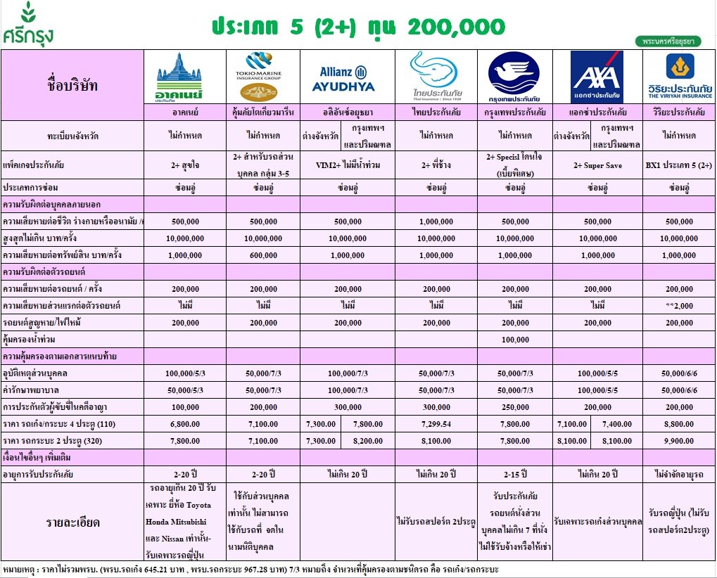 เบี้ยประกันประเภท 5 (2+) ทุน 200,000 บาท