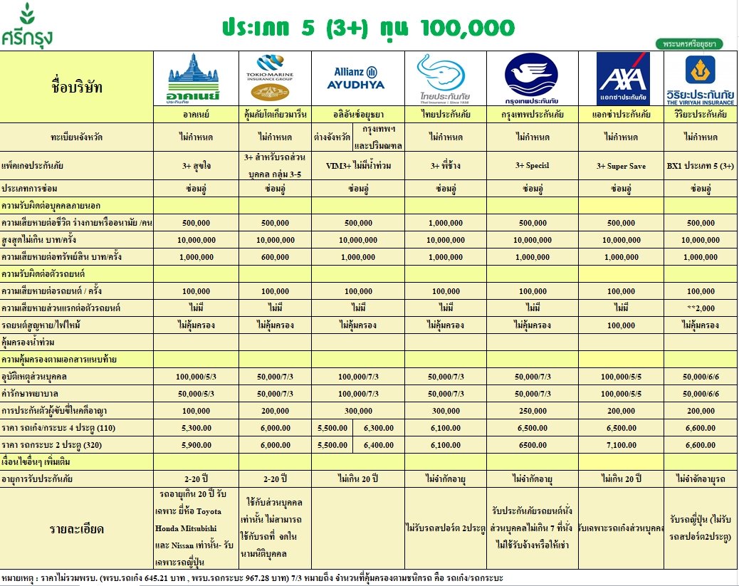 เบี้ยประกันประเภท 5 (3+) ทุน 100,000 บาท