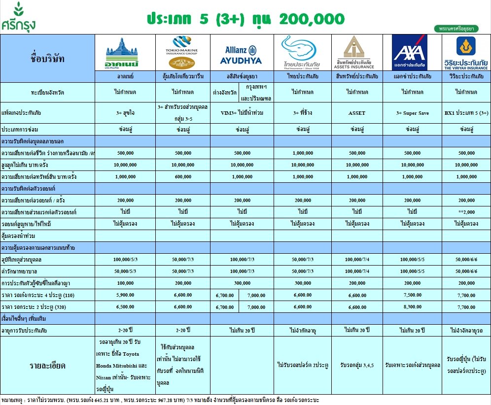 เบี้ยประกันประเภท 5 (3+) ทุน 200,000 บาท