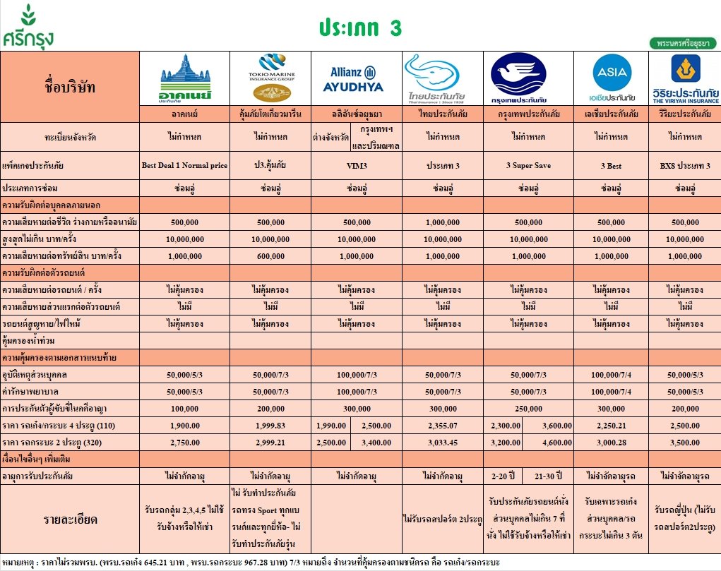 เบี้ยที่คัดมาให้นี้จะเป็นเบี้ยประเภท 5 (2+,3+) และเบี้ยประเภท 3 รถเก๋ง กระบะ ตู้ ส่วนบุคคล เบี้ยอื่นๆนอกเหนือจากที่นำเสนอให้เช็คเบี้ยกับเจ้าหน้าที่ศรีกรุง