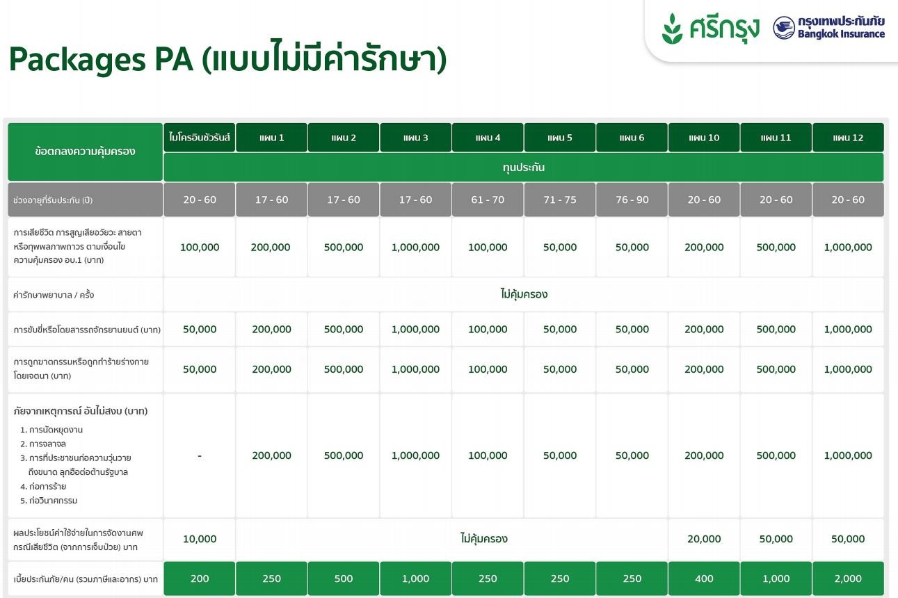 แผนประกันอุบัตรเหตุ แบบไม่มีค่ารักษาพยาบาล