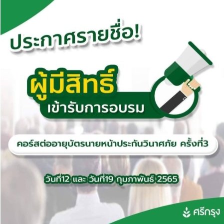 เลือกคอร์สอบรม ต่ออายุบัตรนายหน้าประกันวินาศภัย ครั้งที่3 ตามที่ท่านได้ลงจองไว้