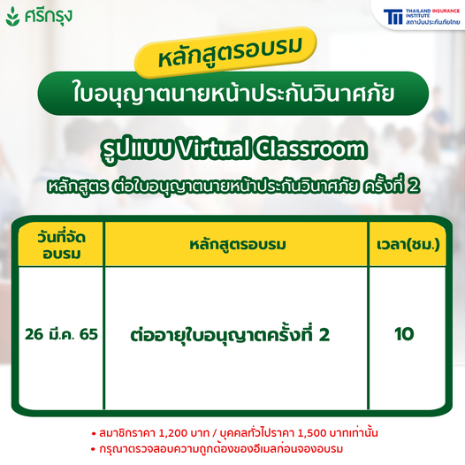 คอร์สอบรมต่ออายุบัตรนายหน้าประกันวินาศภัยครั้งที่ 2