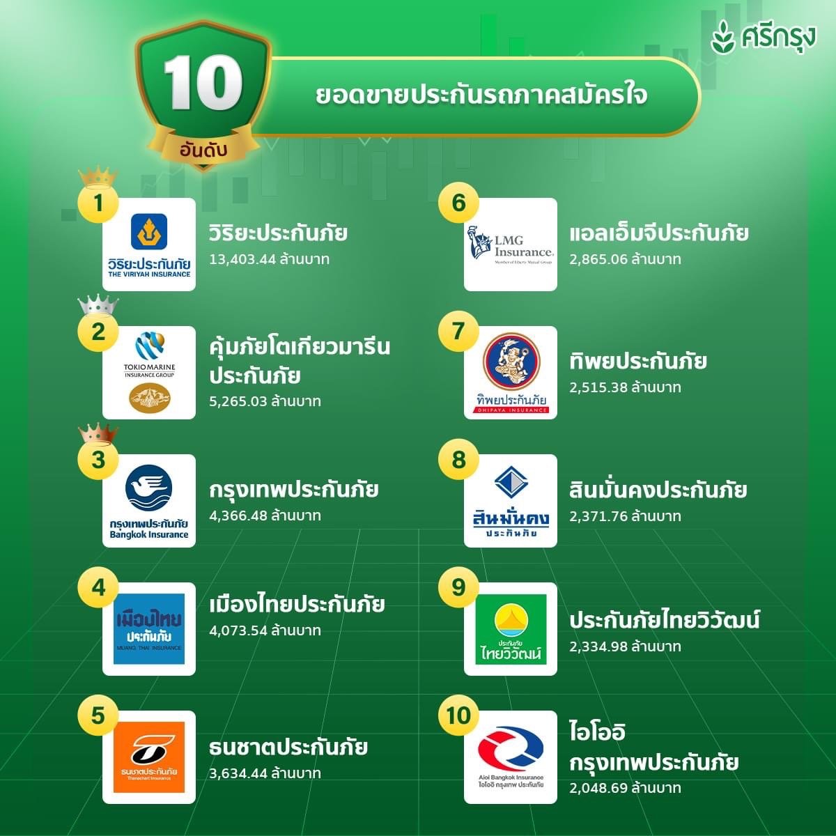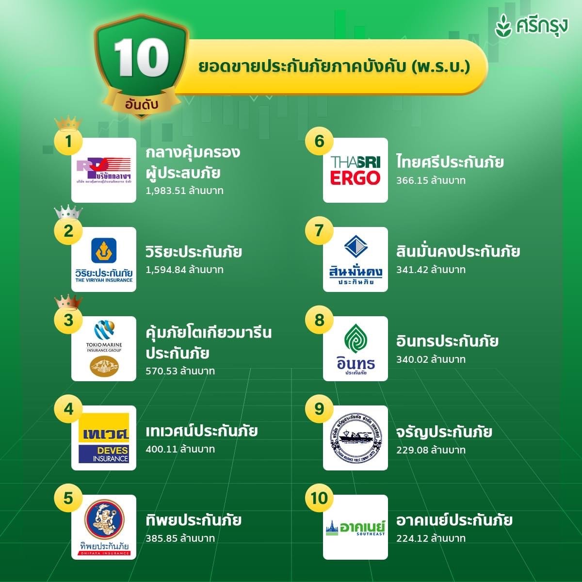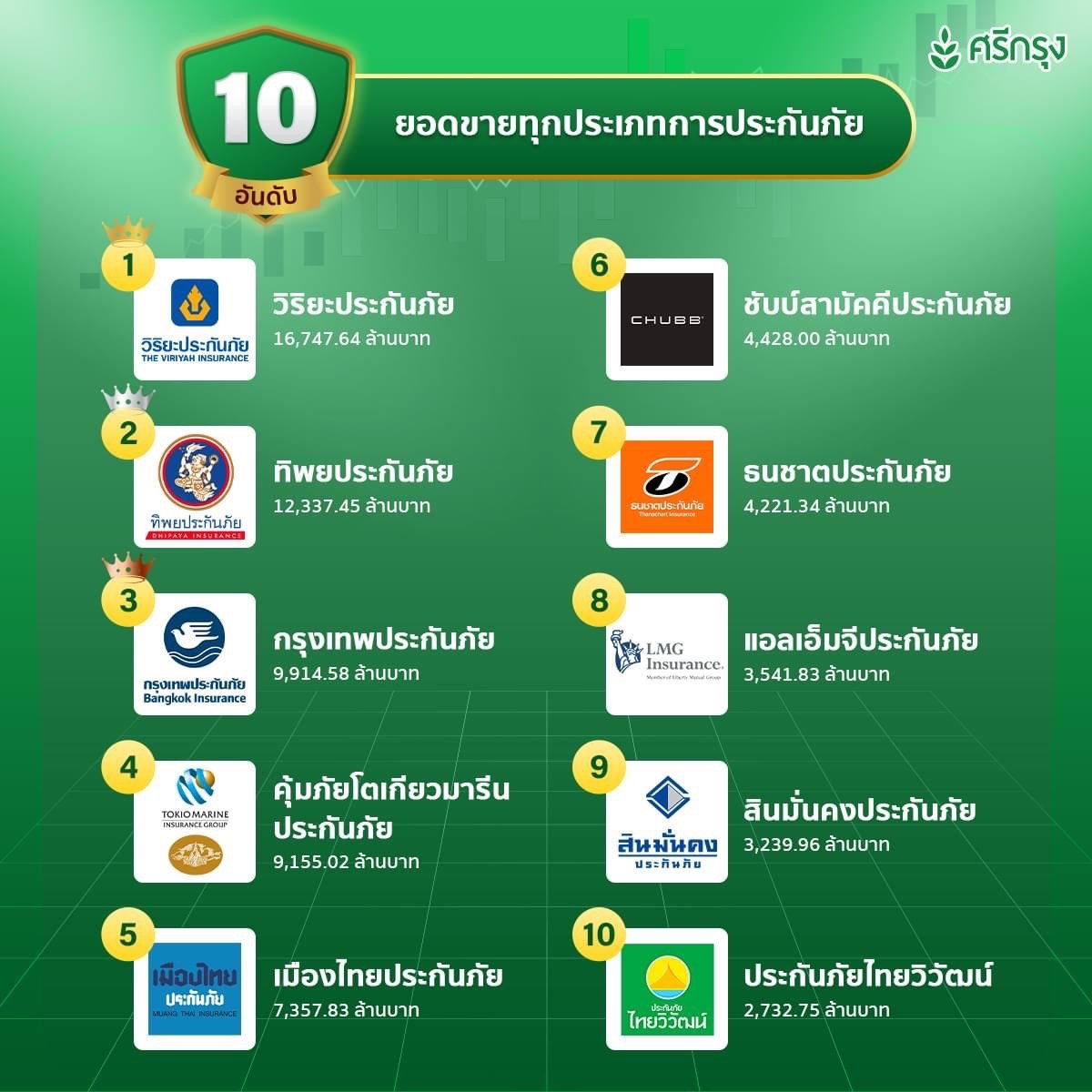 ส่องยอดขาย TOP 10 บริษัทประกันที่มียอดขายสูงที่สุดในช่วงต้นปี
