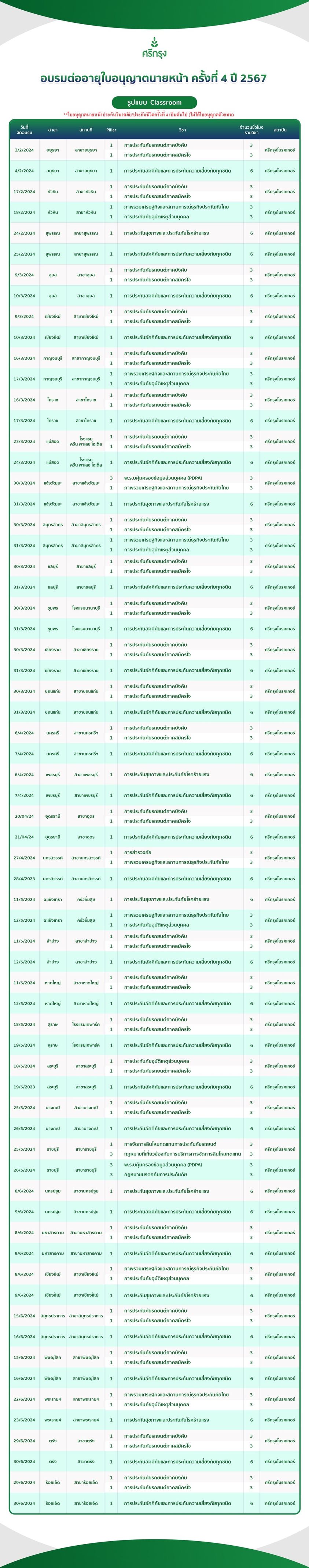 คอร์สอบรม ขอต่ออายุบัตรนายหน้าประกันชีวิต/วินาศภัย ครั้งที่4 จัดโดยสถาบันศรีกรุง