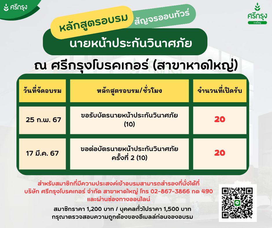 ศรีกรุงโบรคเกอร์ (สาขาหาดใหญ่) เปิดรับสมัคร