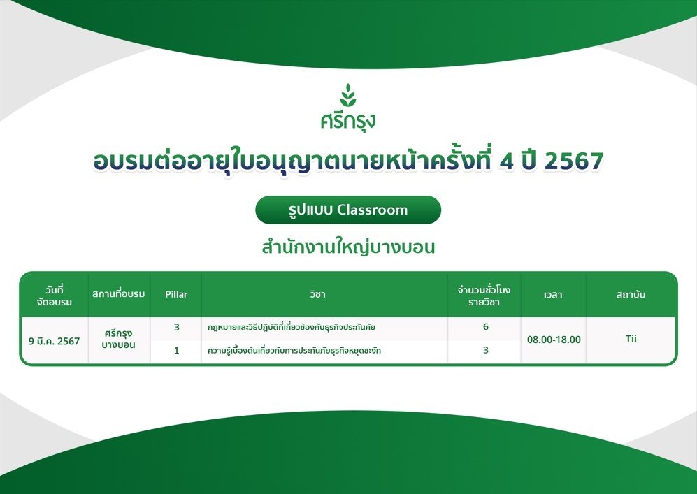 รายละเอียดคอร์สขอต่ออายุบัตรนายหน้าประกันวินาศภัย/ชีวิต ครั้งที่4