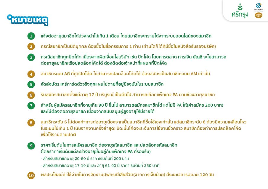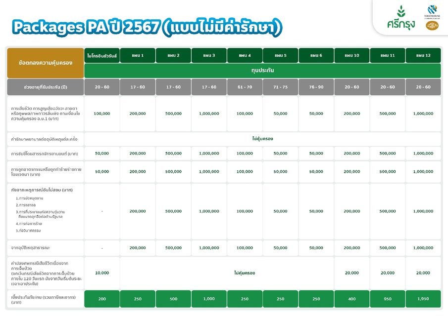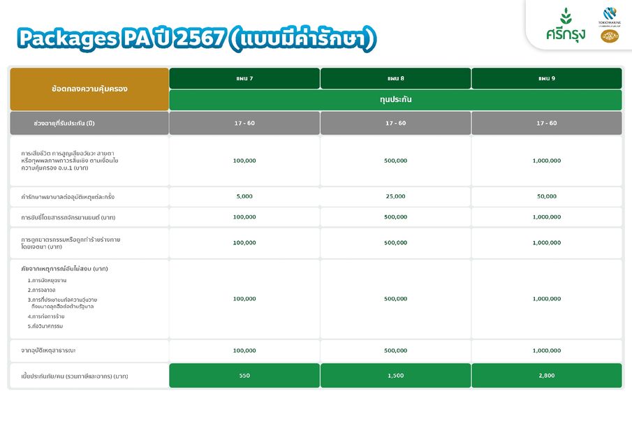 หมายเหตุ : กรณีที่ซื้อแบบมีค่ารักษาพยาบาล และแบบไม่มีค่ารักษา