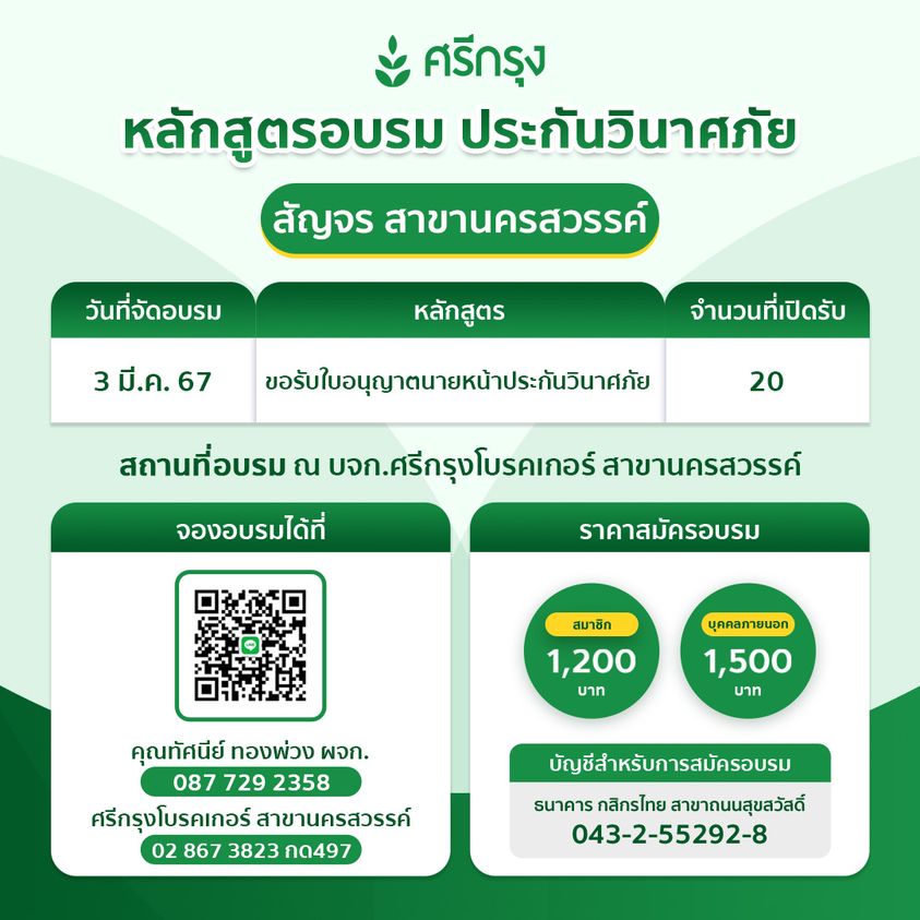 สำหรับท่านไหนที่สอบผ่านแล้ว สาขานครสวรรค์ เปิดอบรมคอร์สขอรับบัตรนายหน้าประกันวินาศภัย จัดอบรมที่สาขา รับจำนวนจำกัดนะครับ!!