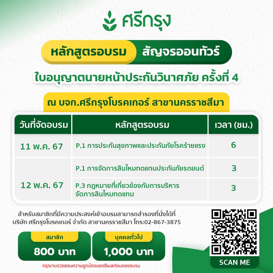 โคราช เปิดรับจองอบรม ต่ออายุบัตรนายหน้าประกันวินาศภัย/นายหน้าประกันชีวิต ครั้งที่4 สามารถเลือกลงอบรม 1วัน หรือเลือกลงอบรม ทั้ง2วัน ได้ครับ รีบจองด่วน ก่อนเต็มนะครับ !!