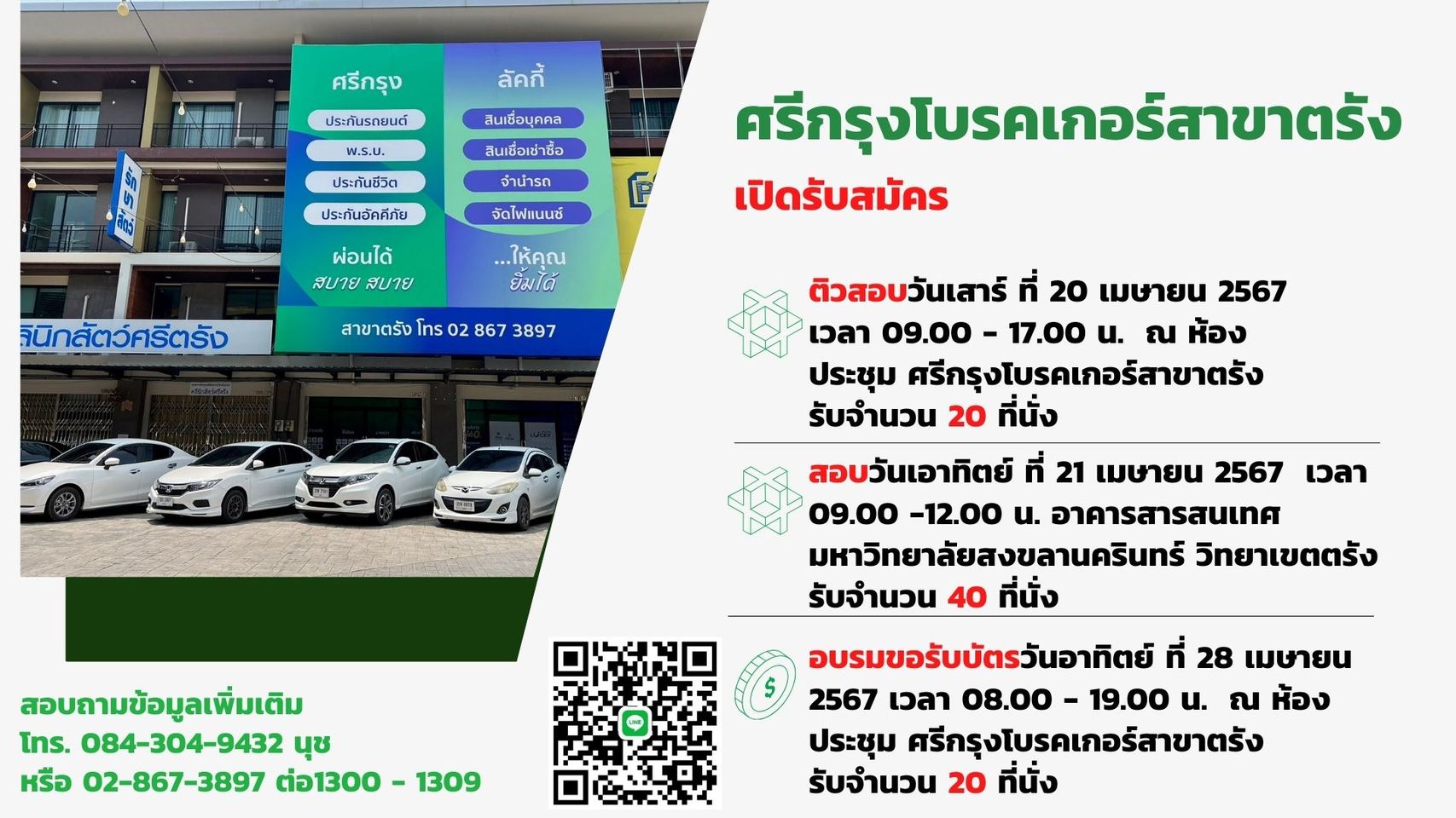 ศรีกรุงโบรคเกอร์ สาขาตรัง ประกาศเปิดรับสมัครคอร์สอบรม