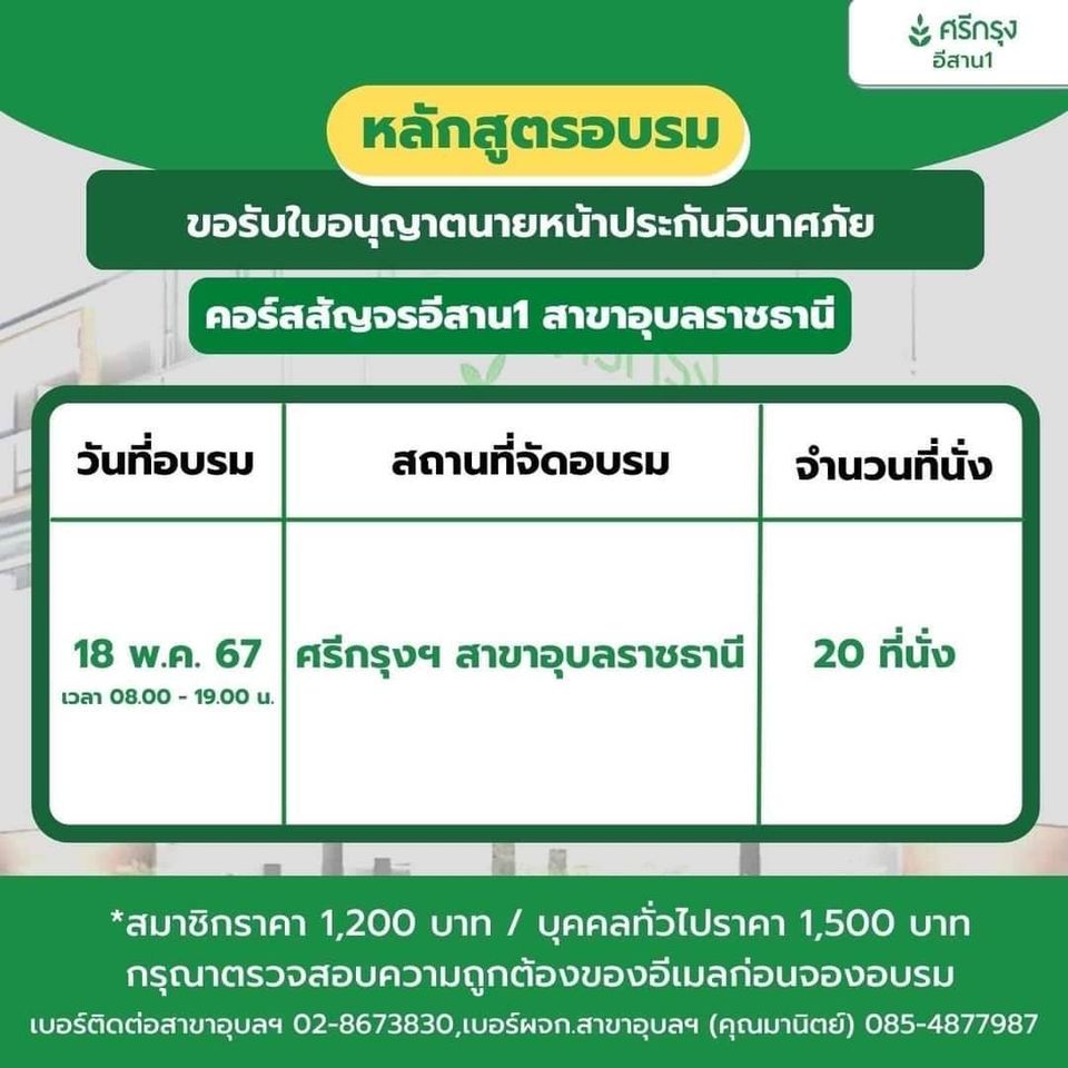 ศรีกรุงโบรคเกอร์ สาขาอุบลราชธานี โทร. 098-3578032