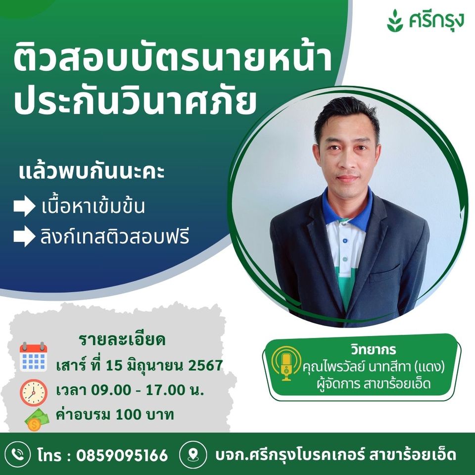 ศรีกรุงโบรคเกอร์ สาขาร้อยเอ็ด เปิดคอร์สติวสอบบัตรนายหน้า และเปิดรับสมัครสอบบัตรนายหน้าประกันวินาศภัย (รอบพิเศษ) รีบจับจองที่นั่งกันได้เลยครับ