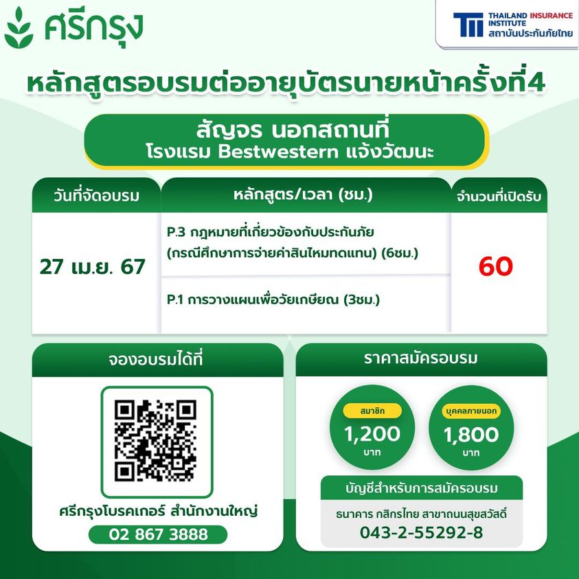 วันนี้ ศรีกรุงโบรคเกอร์ เปิดโอกาสรับสมัครตัวแทนนายหน้าขายประกันภัย
