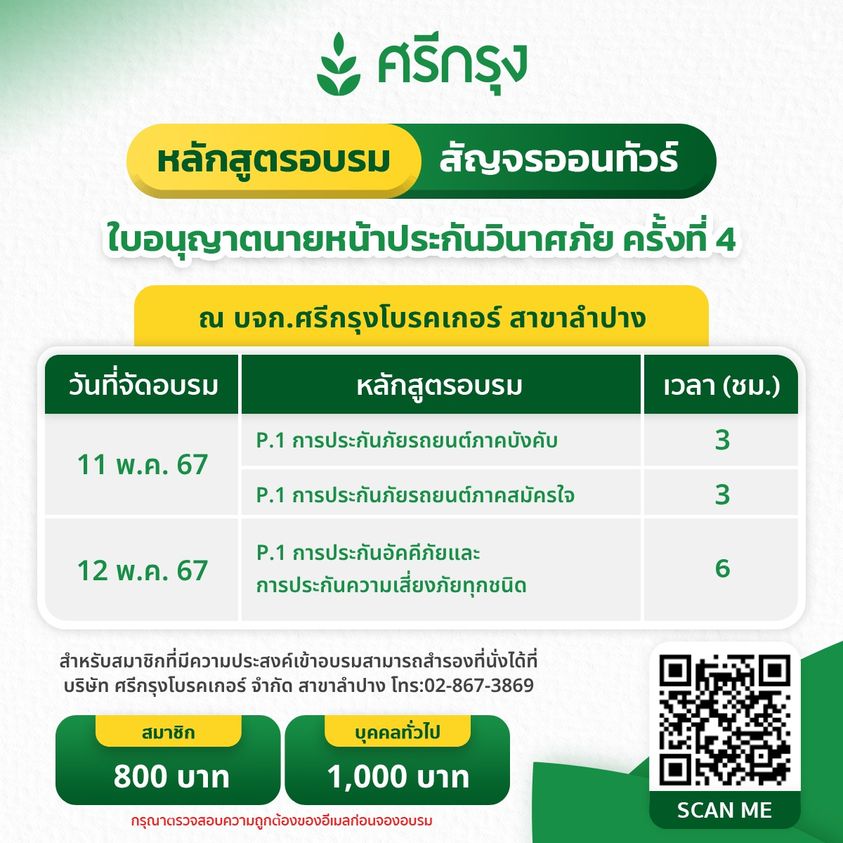 ว้าวๆๆจัดยาวๆแบบต่อเนื่องกับศรีกรุงโบรคเกอร์ สาขาลำปาง ที่มาพร้อมกับคอร์สต่อ4 สามารถเลือกจองได้เลยย รีบจองก่อนเต็มเน้ออ