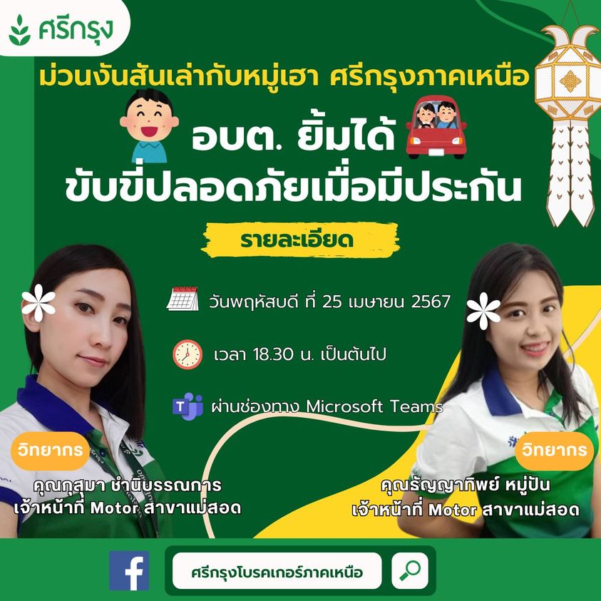 ส่งท้ายเดือนเมษากับสองสาวจากสาขาแม่สอด ที่จะพาทุกท่านมาม่วนไปด้วยกันกับประกันรถยนต์ อย่าลืมเตรียมโหลด MS Teams เตรียมกั๋นไว้ตวยเน้อ