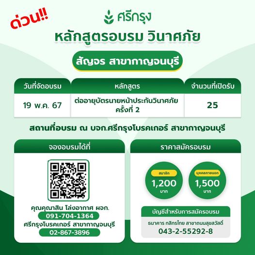ศรีกรุงภาคตะวันตก สาขากาญจนบุรี มีคนขอมาว่าเปิดคอร์สเพิ่มหน่อย เต็มเร็วจัง