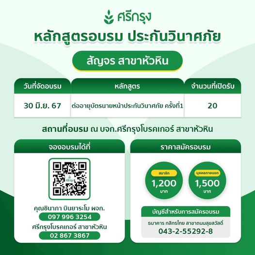 สถานที่อบรม : บริษัท ศรีกรุงโบรคเกอร์ จำกัด (สาขาหัวหิน)