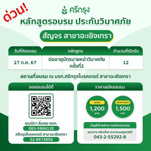สนใจคลิกลิงก์เพื่อติดต่อสาขาฉะเชิงเทรา https://bit.ly/3Lhibyj