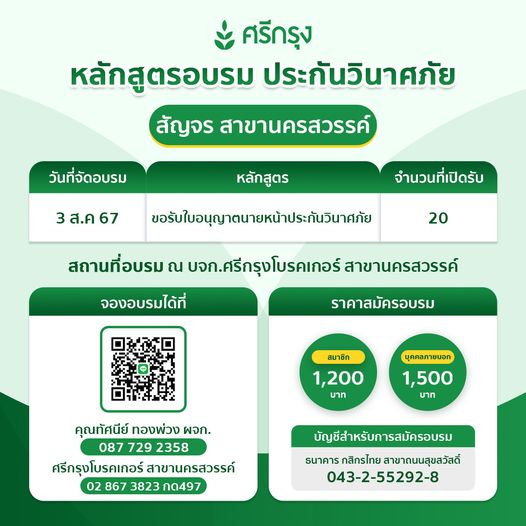 สำหรับท่านไหนที่สอบผ่านแล้ว สาขานครสวรรค์ เปิดอบรมคอร์สขอรับบัตรนายหน้าประกันวินาศภัย จัดอบรมที่สาขา รับจำนวนจำกัดนะครับ!!