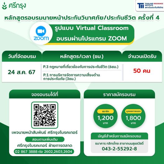 คอร์สอบรมต่ออายุบัตรนายหน้าประกันวินาศภัยครั้งที่ 4 (ผ่านระบบ Zoom)