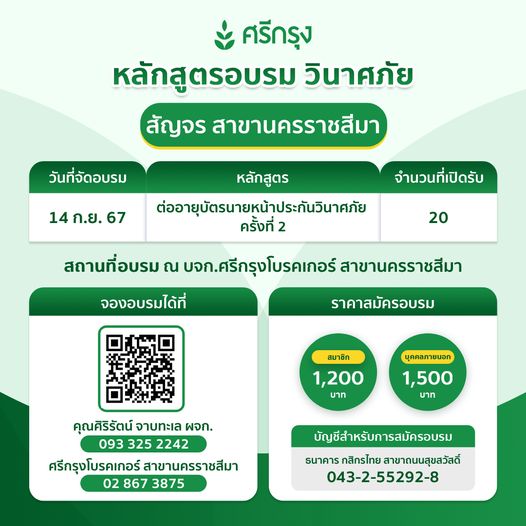 มาแล้วจ้าา คอร์สเดือน9สำหรับพี่ๆสมาชิกจังหวัดโคราชและพื้นที่ใกล้เคียง เปิดให้สำรองที่นั่งกันแล้ววันนี้ กับคอร์สต่ออายุบัตรนายหน้าวินาศภัย ครั้งที่2 รีบจับจองก่อนเต็ม