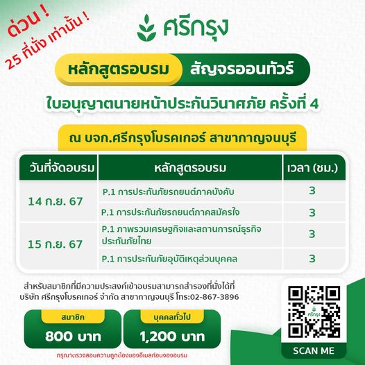 สถานทีอบรม : บจก.ศรีกรุงโบรคเกอร์ สาขากาญจนบุรี