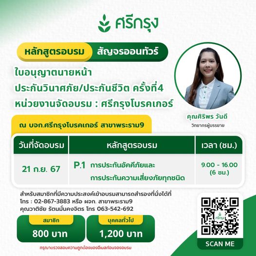 ฉ่ำกว่าฝนตอนนี้ก็ต้องคอร์สอบรมที่ศรีกรุงโบรคเกอร์แล้วนาที มาครับๆ แอดมีคอร์สมาเสนอ ใครหาที่อบรมต่ออายุบัตรนายหน้าวินาศภัย/ชีวิต ครั้งที่4 แบบ 6ชั่วโมง ใจกลางเมืองอยู่ ศรีกรุงโบรคเกอร์ สาขาพระราม9 เราจัดมาให้พี่ๆนายหน้าอีกแล้วครับ รีบจับรีบจองที่นั่งกันให้ไว