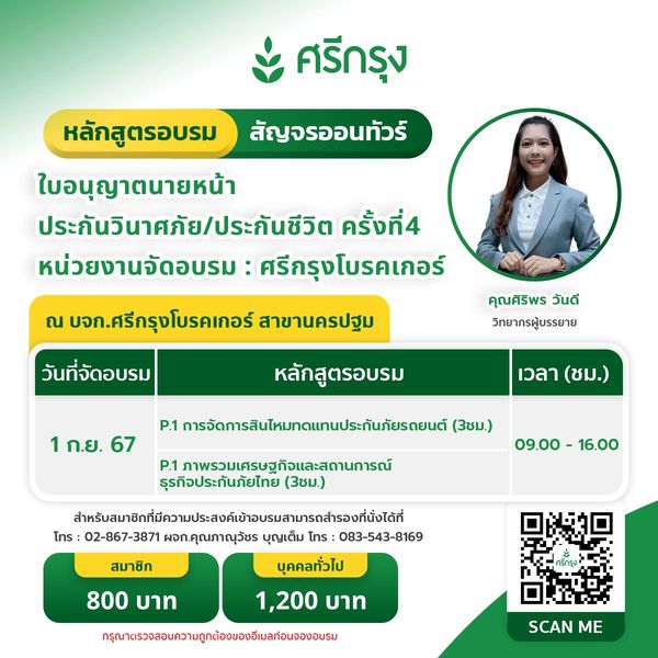 รายละเอียดคอร์สขอต่ออายุบัตรนายหน้าประกันวินาศภัย/ชีวิต ครั้งที่4