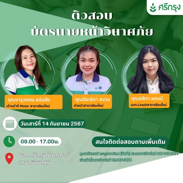 กลับมาจัดหนักจัดเต็ม เปิดให้แบบต่อเนื่องตามคำเรียกร้องทั้งติวสอบ จัดสอบ และคอร์สขอรับบัตรนายหน้า ที่ศรีกรุงโบรคเกอร์ สาขาเชียงใหม่