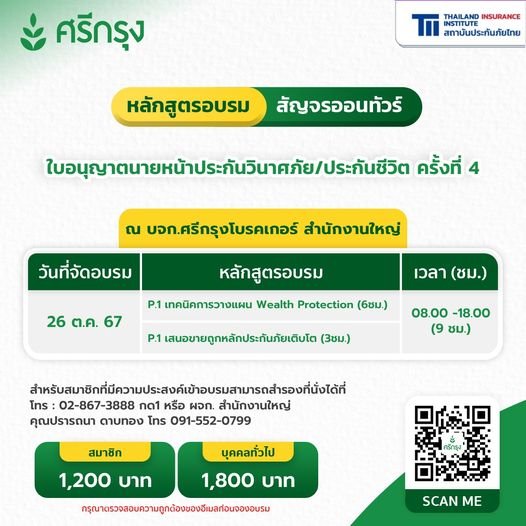 วันนี้ ศรีกรุงโบรคเกอร์ เปิดโอกาสรับสมัครตัวแทนนายหน้าขายประกันภัย