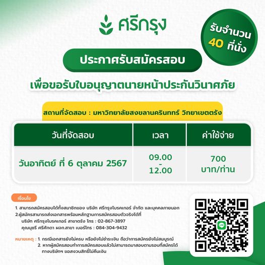 วันนี้ ศรีกรุงโบรคเกอร์ เปิดโอกาสรับสมัครตัวแทนนายหน้าขายประกันภัย