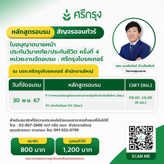 พี่ๆท่านไหนอยู่แถวฝั่งธนขอให้ยกมือขึ้น ! !! ถ้ากำลังมองหาคอร์สต่ออายุบัตรนายหน้าวินาศภัย/ชีวิต ครั้งที่4 อยู่ ศรีกรุงโบรคเกอร์ สำนักงานใหญ่ เปิดให้พี่ๆได้จับจองกันแล้วน้าาา ช้าหมดเต็มก่อนนะ