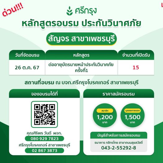 ศรีกรุงโบรคเกอร์สาขาเพชรบุรี เปิดให้จองแล้วสำหรับ ต่ออายุบัตรนายหน้าครั้งที่1 รีบจองด่วน! รับจำนวนจำกัดนะครับ 15 ที่นั่ง เท่านั้นนะครับ!!!